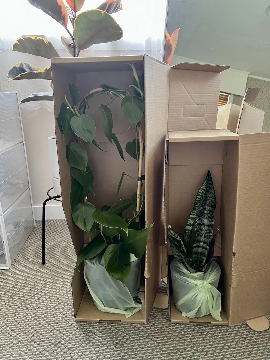 Each Small, Medium & Large plant is individually contained within its own protective cardboard Plant Carton which may be joined to other cartons in your order.